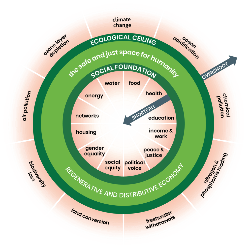 The Doughnut Economics framework, developed by Kate Raworth, provides a practical way for us to collectively identify the building blocks that matter for our wellbeing, and how we can pursue these outcomes in way that is attuned to the natural environment and ecosystem that we are privileged to inhabit.